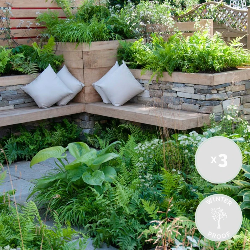 ce mélange de fougères mixtes ou fougère dextérieur est rustique et également à feuilles persistantes. Ils ont fière allure sur votre bordure et peuvent être appréciés toute lannée. Une plante de jardin non seulement pratique, mais aussi un bel atout pour votre jardin.