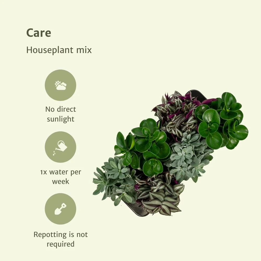 Grâce à cette box de plantes d’intérieur, vous découvrirez de toutes nouvelles variétés. La sélection de plantes est réalisée par nos experts parmi les plantes suivantes : chlorophytum – fittonia – pilea – peperomia – sedum – trandescantia. Ces plantes adorent la lumière. Ainsi, il est recommandé de les placer à la lumière indirecte, sans contact direct avec le soleil.
