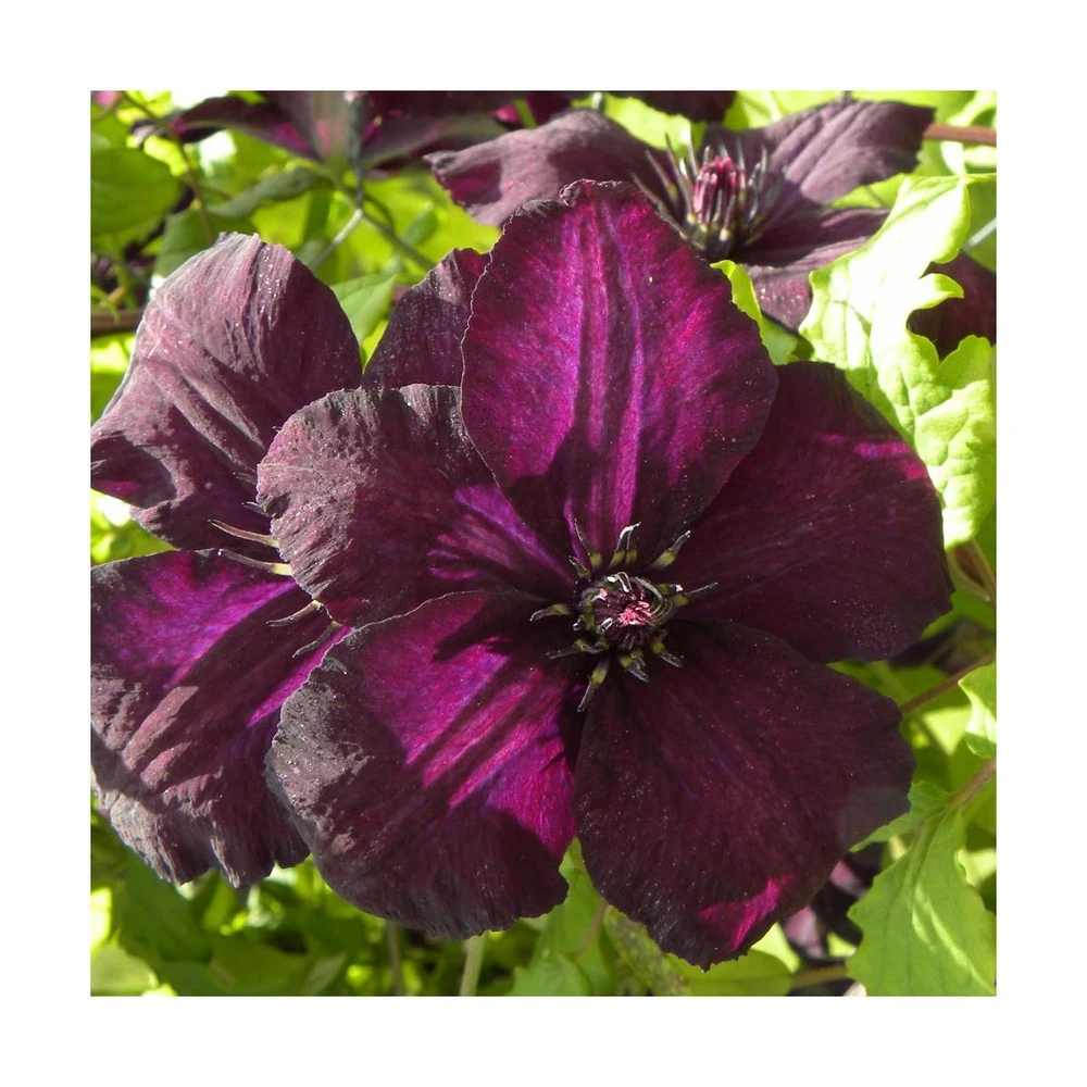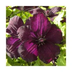 de la famille des viticella, cette clématite est donc très florifère. elle est violet pourpre, presque noir aux étamines foncées et d’une taille de 5 à 8 cm. Elle fleurira en fin de printemps une première fois très intensément, puis refleurira en septembre avec un peu moins de fleurs.