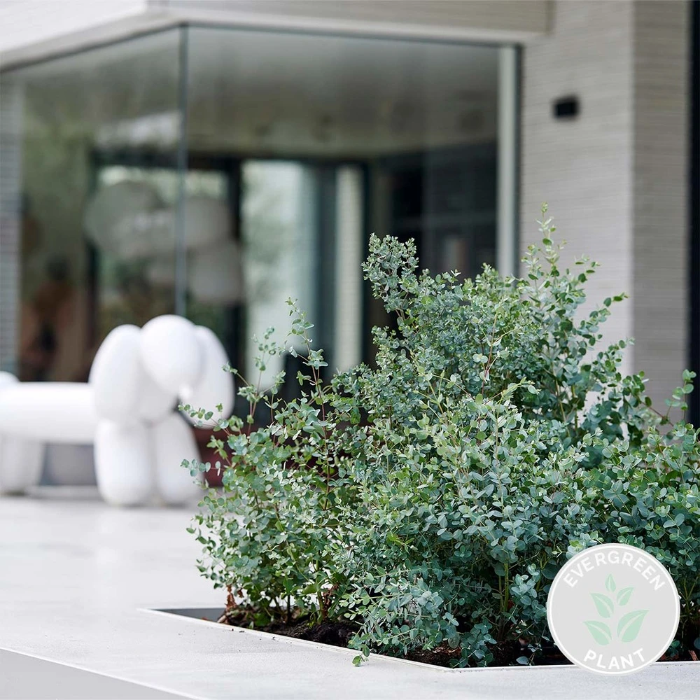 leucalyptus gunnii, mieux connu sous le nom de gum tree, est un arbuste à feuilles persistantes célèbre pour ses feuilles gris-vert et son parfum frais. Ses feuilles sont généralement rondes ou ovales et ont fière allure sur votre balcon ou votre terrasse, dont vous pourrez profiter toute lannée. Une plante de jardin qui nest pas seulement pratique, mais qui est aussi un merveilleux atout pour votre jardin ou votre balcon.