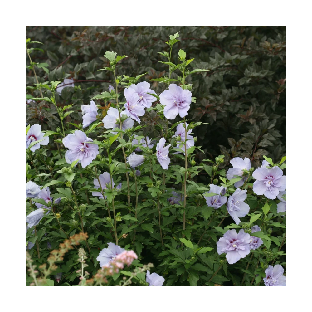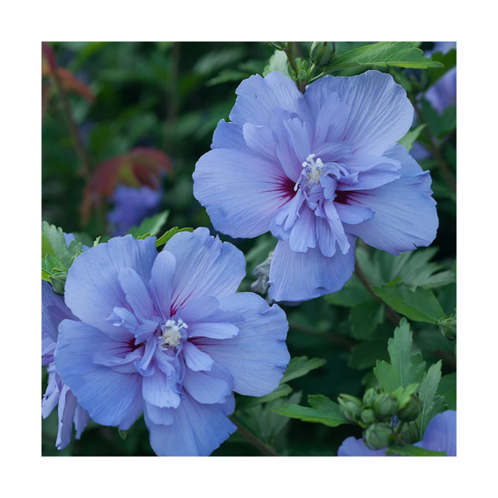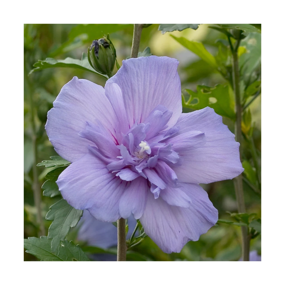l’hibiscus blue chiffon® est un petit arbuste atteignant à taille adulte 2 mètres de haut. Sa floraison bleue double, tout l’été en fait un arbuste indispensable dans vos massifs ou en isoler au jardin. Au fil des années cette plante restera trapue est compacte si elle est taillée après la floraison.