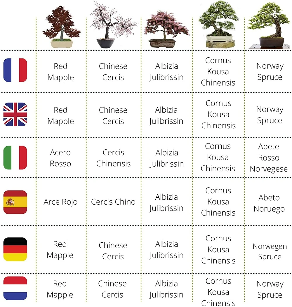 – 5 sachets de graines de bonsaïs : red mapple, chinese cercis, juniperus, liquidambar, norway spruce