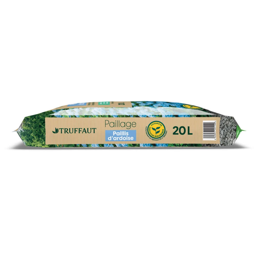 Grâce Ă son poids et Ă l’imbrication des Ă©lĂ©ments, le paillis d’ardoise a une excellente tenue et limite nettement l’Ă©rosion du sol. InaltĂ©rable, incombustible et imputrescible, ce paillis est très Ă©conomique sur le long terme. Son pH acide le rend idĂ©al pour les plantes de terre de bruyère et Ă pour particularitĂ© de favoriser le bleuissement des hortensias par libĂ©ration d’alumine. SĂ©lectionnĂ© pour son aspect ambrĂ©, ce paillis d’ardoise est unique et Ă©pouse la tendance du retour au naturel et aux matĂ©riaux bruts.