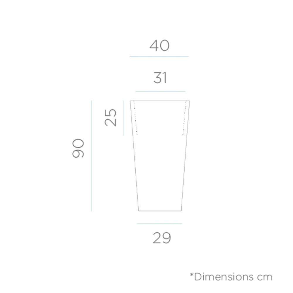 c’est un pot de fleurs haut aux lignes droites et une finition lisse. Ce modèle existe en plusieurs couleurs et dimensions.