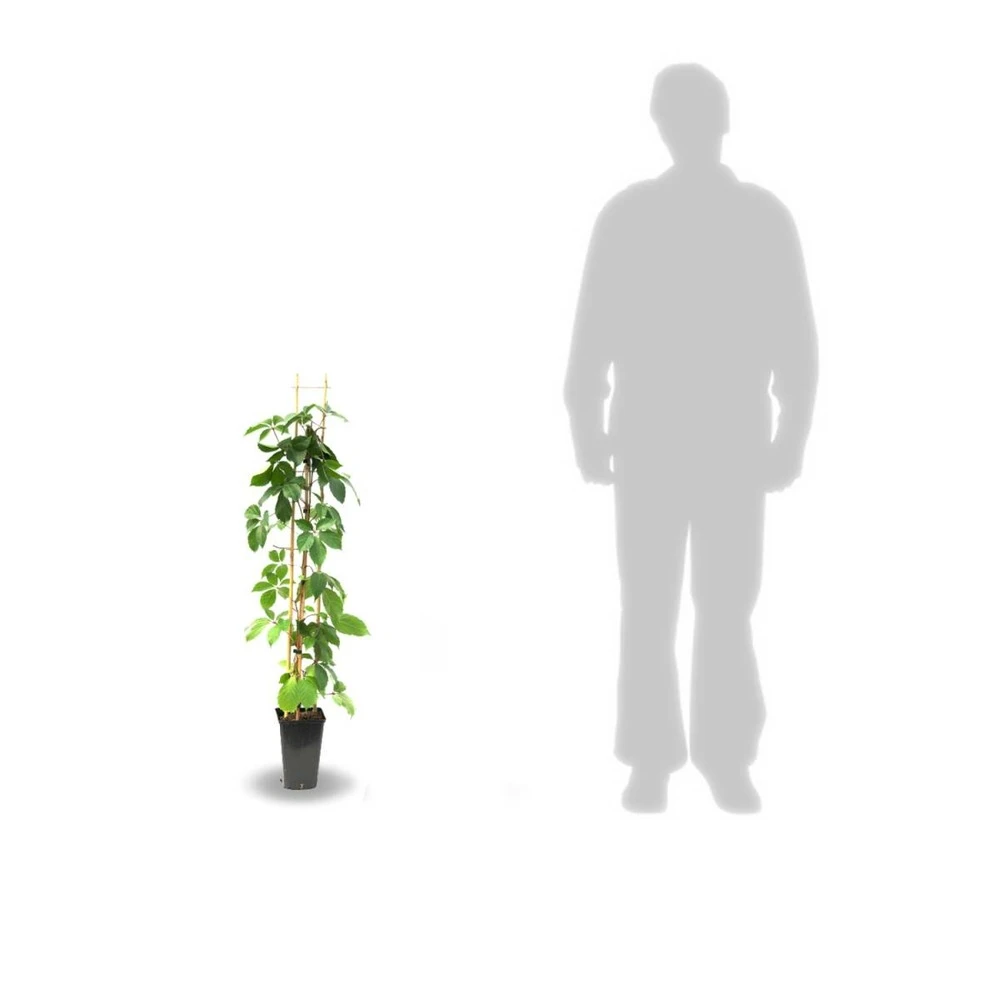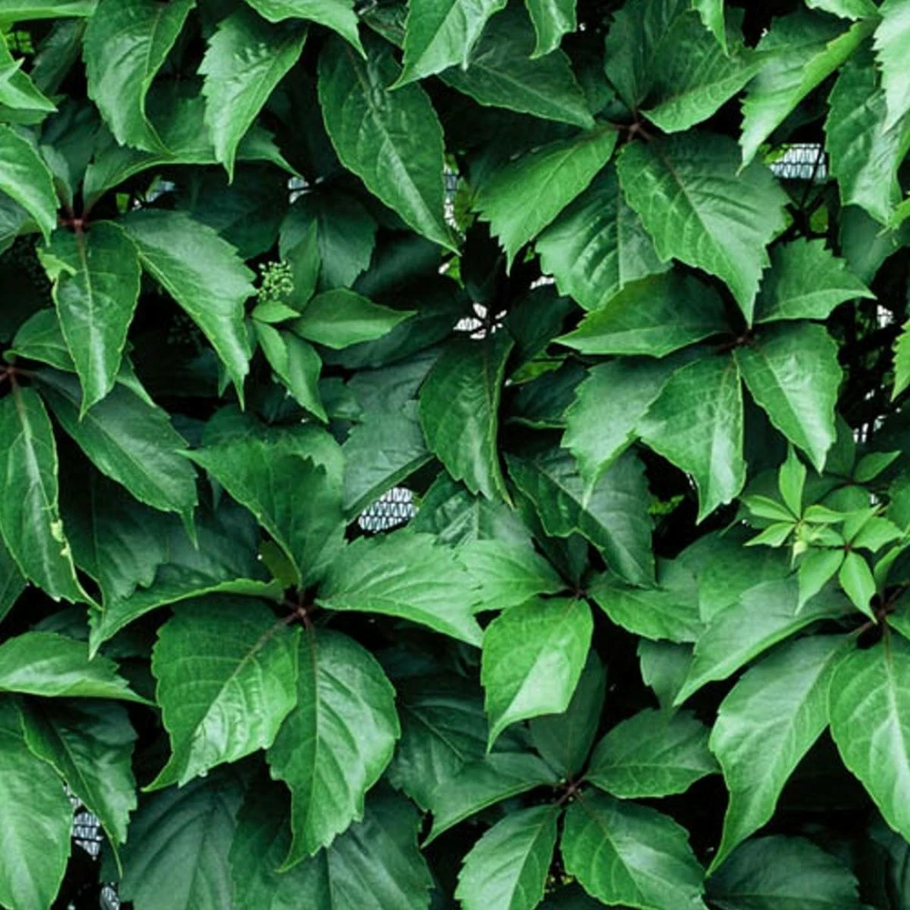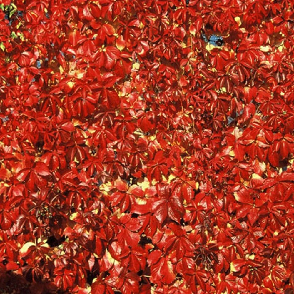 feuillage vert foncé brillant en été devenant rouge flamboyant à l’automne. grimpe à l’aide de vrilles.